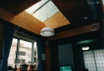 うなぎの寝床のような敷地のため中央部分を切りこみ、開口部やトップライトから採光を確保
