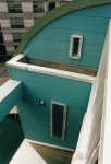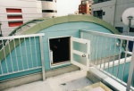 正面バルコニーはアルミパンチングメタルとポリカーボネート板の組み合わせ