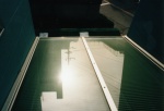 うなぎの寝床のような敷地のため中央部分を切りこみ、開口部やトップライトから採光を確保